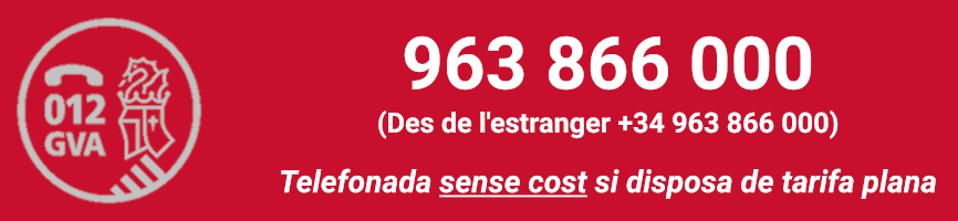 Pot telefonar al número 012 o al 963 866 000. Si telefona des de fora de la Comunitat Valenciana, ha d'usar únicament el 963 866 000.