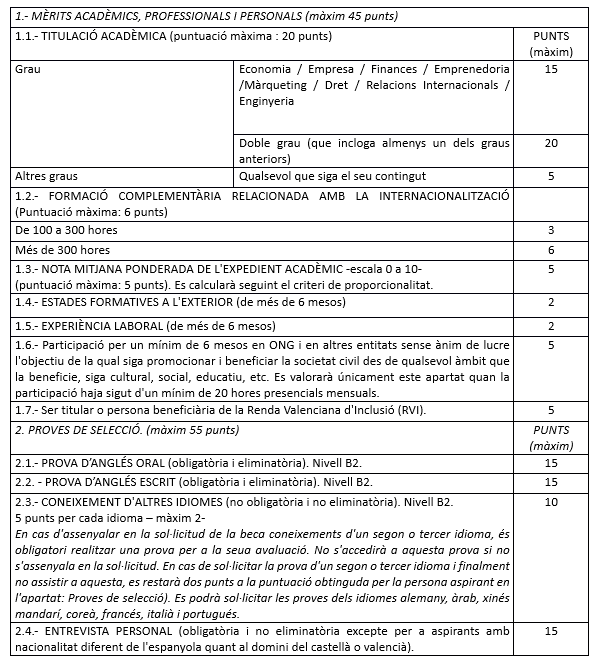 Juntament amb la formació pràctica en qualsevol de les destinacions adjudicades, es desenvoluparà una formació teòrica l'objectiu de la qual serà proporcionar a la persona beneficiària de la beca una visió global de l'activitat empresarial internacional i de l'entorn institucional involucrat en la promoció exterior i internacionalització de les empreses de la Comunitat Valenciana.